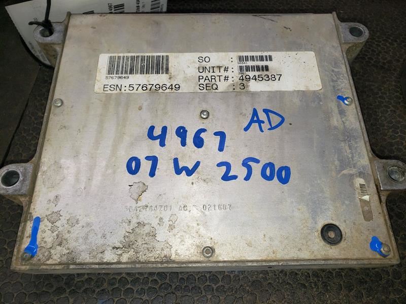 4945387 DSL ECM 6.7 MT 2007 DODGE RAM2500 6.7L MT DIESEL ECM. PART NUMBER 4945387